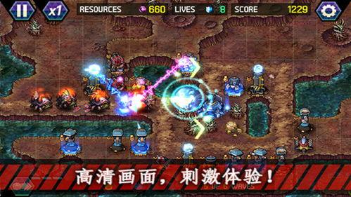 游戏中的防御塔种类繁多,包括激光炮、冰冻塔、火焰塔等。每种防御塔都有其独特的攻击方式和技能。玩家需要根据敌人的特点,选择合适的防御塔进行布置。